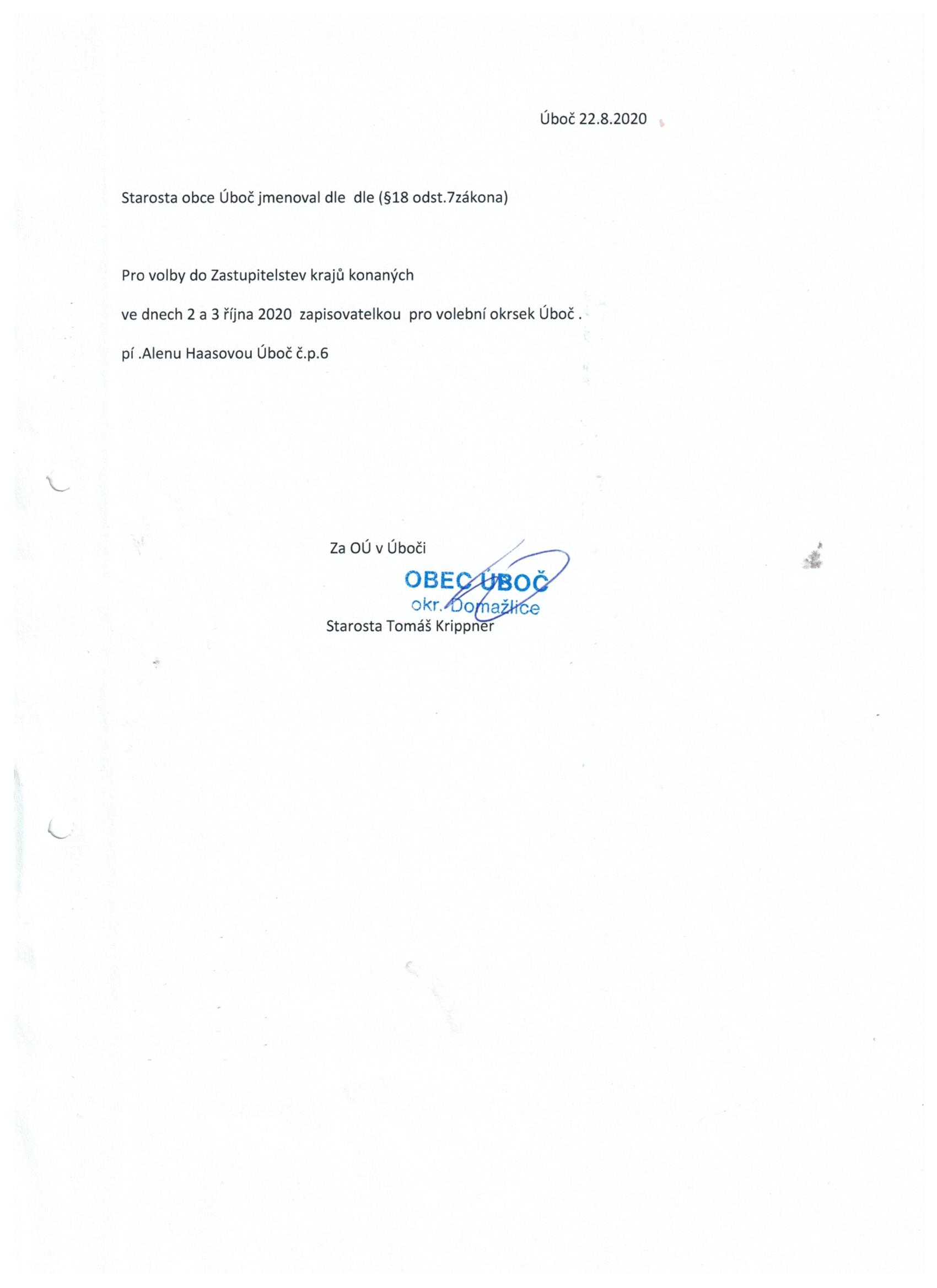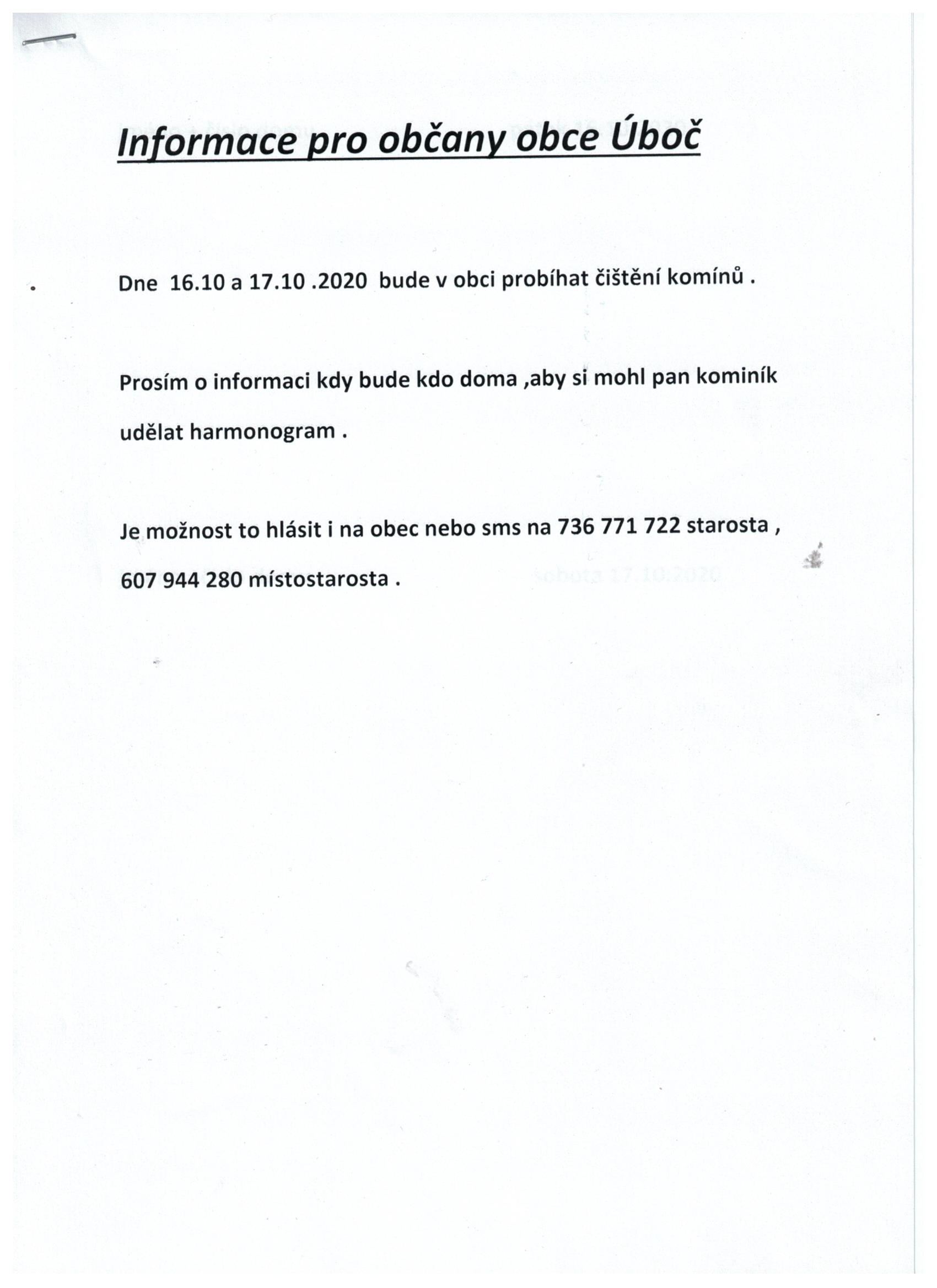 Obecní úřad Úboč Úboč 60 345 43 KolovečIČ: 572471bankovní spojení: 762077389/0800 telefon: 379 422 601, starosta p.Krippner: 736 771 722, místost. p.Matějka: 607 944 280obec@uboc.cz ID datové schránky: i97aveb Úřední hodiny: Úterý: 19:00 - 21:00